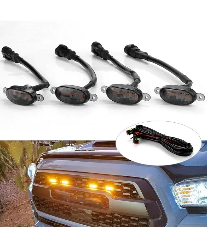 Introducing the 4pcs RAPTOR STYLE UNIVERSAL SMOKE LENS LED GRILL LIGHT KIT, designed for SUVs, sedans, Hilux, Jeeps, and big automotive vehicles. This kit features a sleek smoke lens and powerful LED lights, providing enhanced visibility and a stylish look. The universal design ensures compatibility with a wide range of vehicles, while the yellow and white color options add a custom touch. Perfect for upgrading the appearance and functionality of your vehicle, this kit is a must-have for automotive enthusiasts. This kit is designed for all SUVs, sedans, Hilux, Jeeps, and big automotive vehicles, featuring a sleek smoke lens and powerful LED lights for enhanced visibility and a stylish look. The universal design ensures compatibility with a wide range of vehicles, while the yellow and white color options add a custom touch, making it perfect for upgrading the appearance and functionality of your vehicle. This kit is a must-have for automotive enthusiasts.